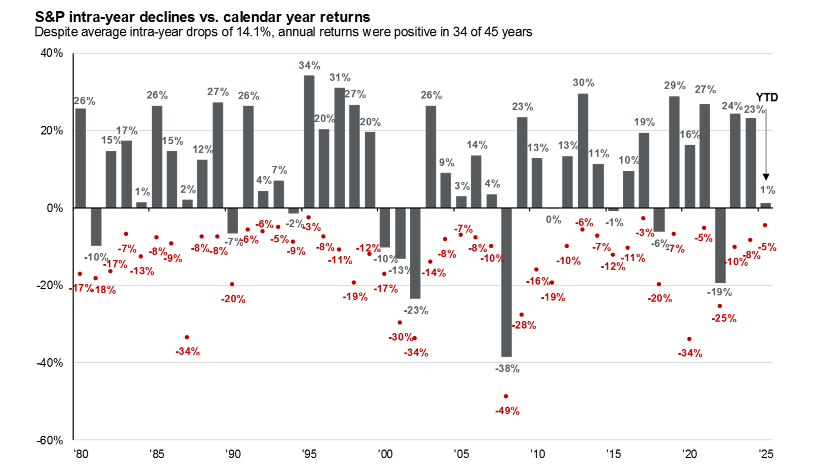Volatility is a feature, not a flaw, of investing. The goal of our diversified portfolios is to weather these storms, balancing growth opportunities with risk management. The research above shows that panic-selling risks locking in losses and missing the rebound. By sticking to your long-term plan, you’re positioned to potentially capture gains as markets stabilize. Let’s discuss any concerns—we are here to guide you through this.
